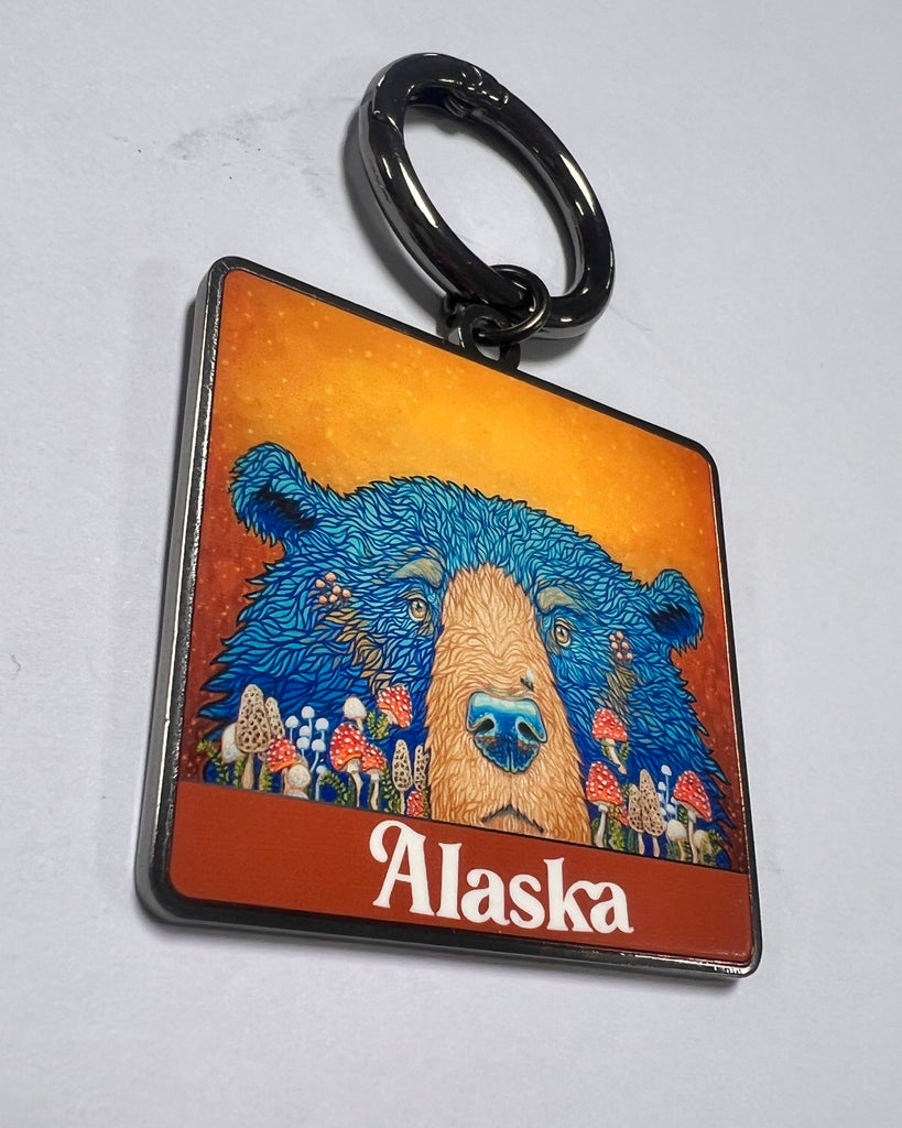 Carry a little forest magic with you wherever you go. This colorful hard enamel keychain features a bear with mushrooms and a tiny bee on his nose—full of charm, curiosity, and woodland whimsy. Crafted with flush enamel fill, black nickel plating, and a matching keyring, it’s built to last and sure to stand out. It’s ready for gifting, collecting, or adding a pop of fun to your keys, bag, or backpack.