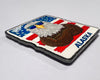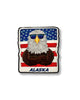 This proud eagle soars with the stars and stripes, bringing a burst of patriotic energy and Alaskan attitude wherever it lands.