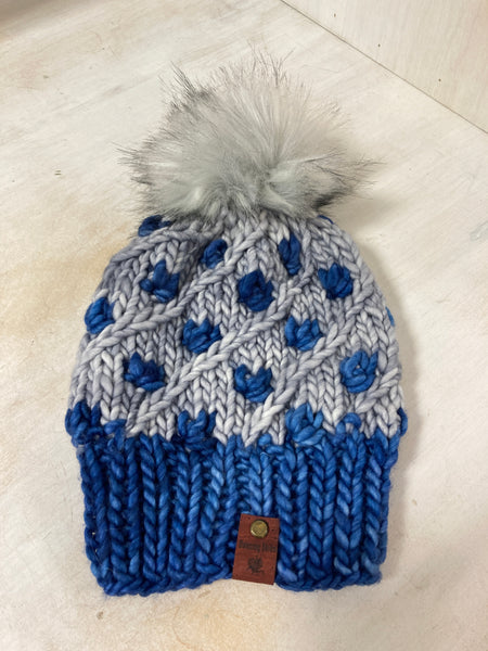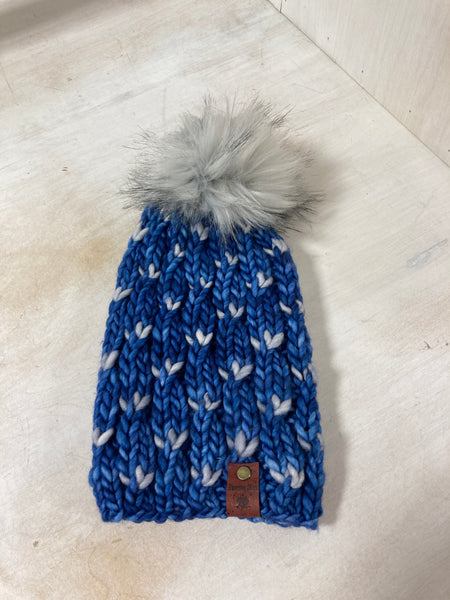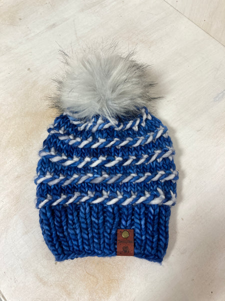 Blue & Gray Stripes Beanie w/ Gray Pom