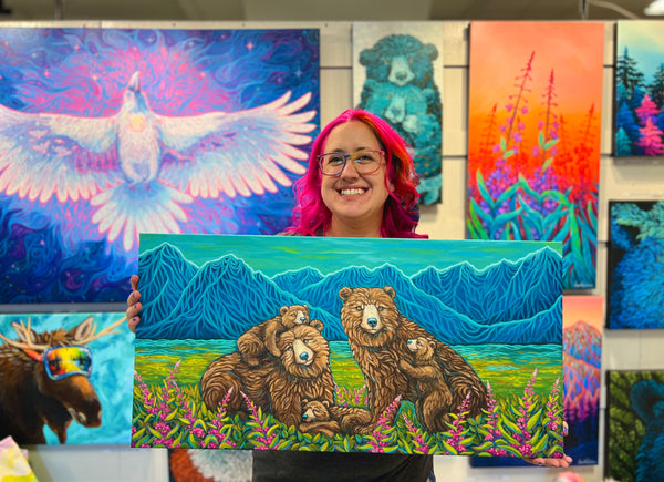 Sweet Memories, Brown Bear Family of 5 Original Painting