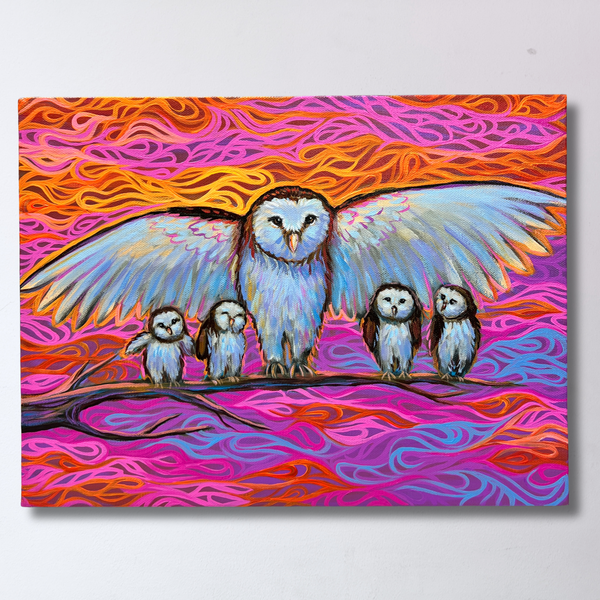 Undercover Owl Family Original Acrylic Painting