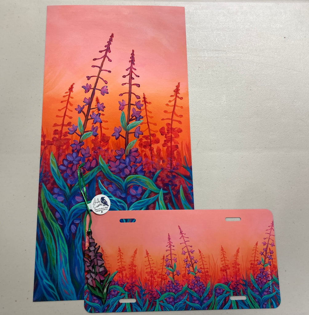 Bundle Includes: 10x20 Dusk Fireweed Paper Print , Dusk Fireweed Vanity Plate and a Handmade Lola Bug Fireweed Mosaic Ornament