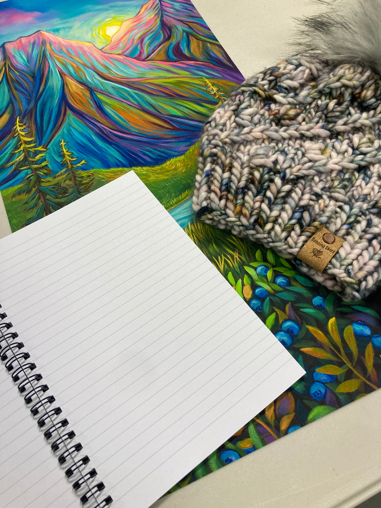 Bundle Includes: 10x20 Secret Solstice Paper Fine Art Print, Hand Dyed Wool Soft Beanie By Dancing Skies and a Secret Solstice Spiral Notebook
